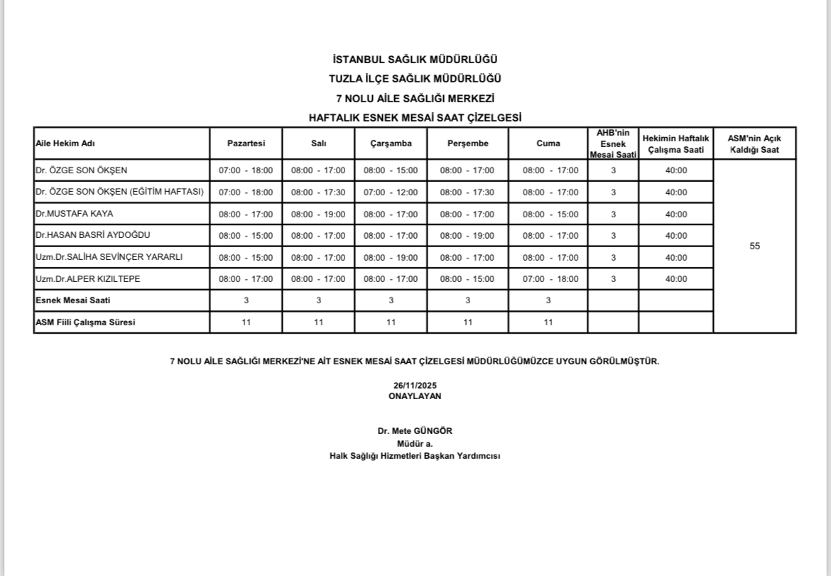 SAATLERİ ARASINDA ASM AÇIKTIR. HER BİRİMİN ÇALIŞMA SAATİ FARKLIDIR.